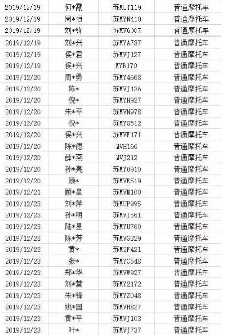 2019年12月机动车号牌