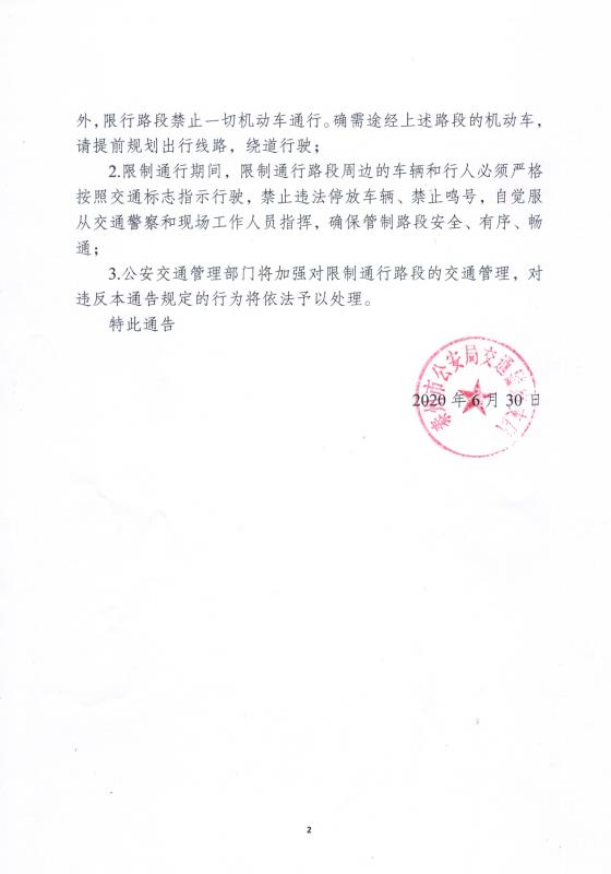3.公安交通管理部门将加强对限制通行路段的交通管理,对违反本通告规定的行为将依法予以处理。