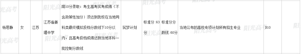 杨兆骐 男 江苏省姜堰中学 降60分录取