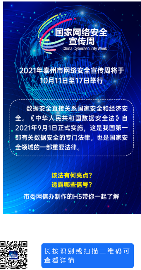 2021年泰州市网络安全宣传周活动来啦!一起来关注!