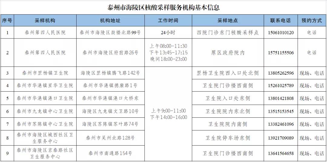 9个!海陵区核酸检测采样点公布