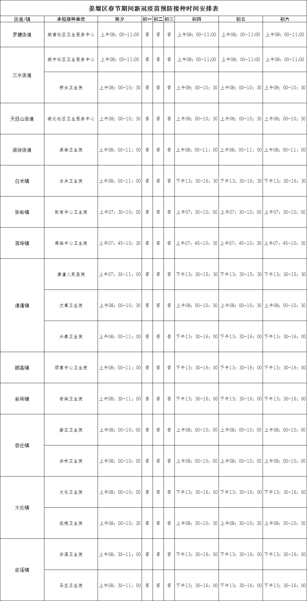 为切实做好姜堰区春节期间新冠疫苗预防接种工作,更好地满足群众新冠疫苗接种需求,姜堰区卫健委统筹安排各预防接种单位在春节期间继续开展新冠疫苗接种。现就有关事项告知如下: