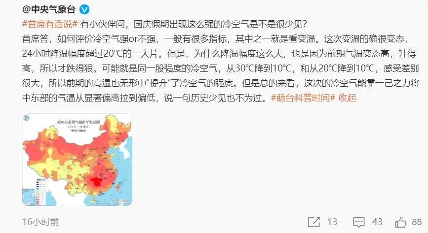历史少见!历史少见!从30℃降到10℃仅用24小时连中央气象台都惊叹