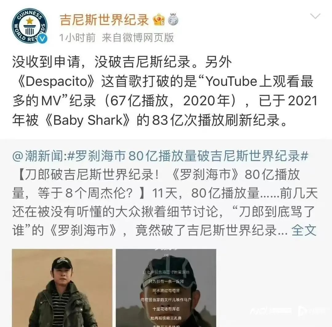 对此,吉尼斯官方辟谣刀郎破世界纪录称,“没收到申请,没破纪录”。