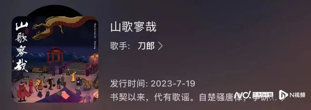 南都记者了解到,《罗刹海市》为刀郎于7月19日发布的新专辑《山歌廖哉》中的一首单曲。