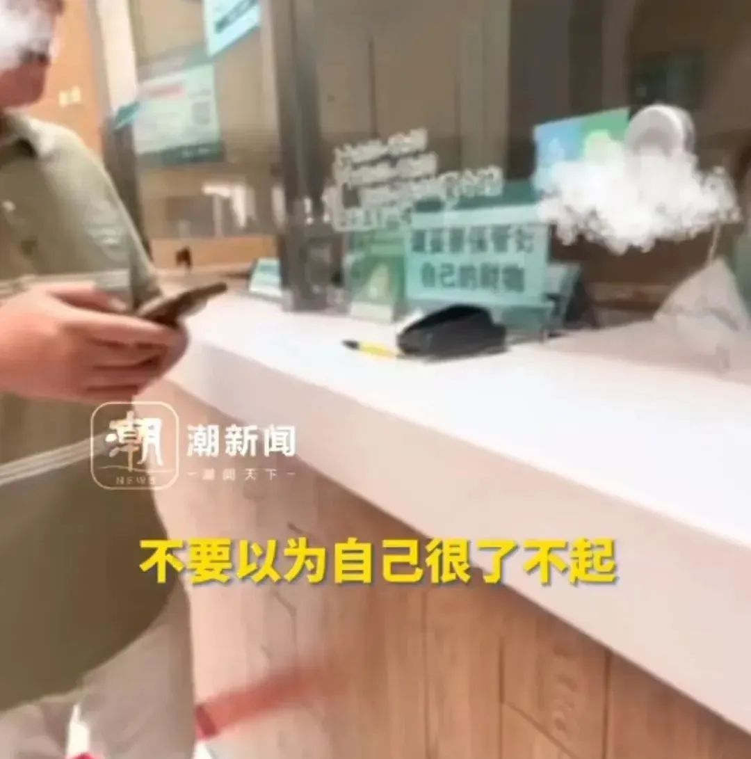 视频中,窗口工作人员对男子说:“不要以为自己很了不起。”男子大声反驳道:“我有什么了不起,我多问你一遍你就这样讲。”