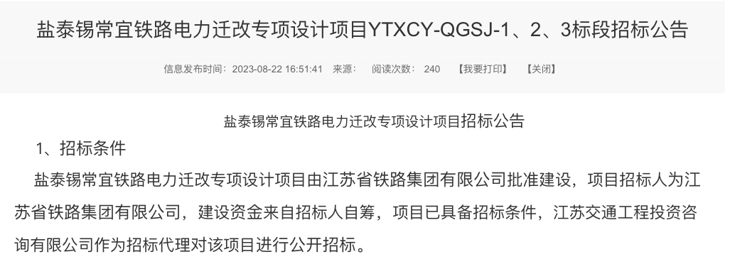 近日江苏省铁路集团有限公司发布