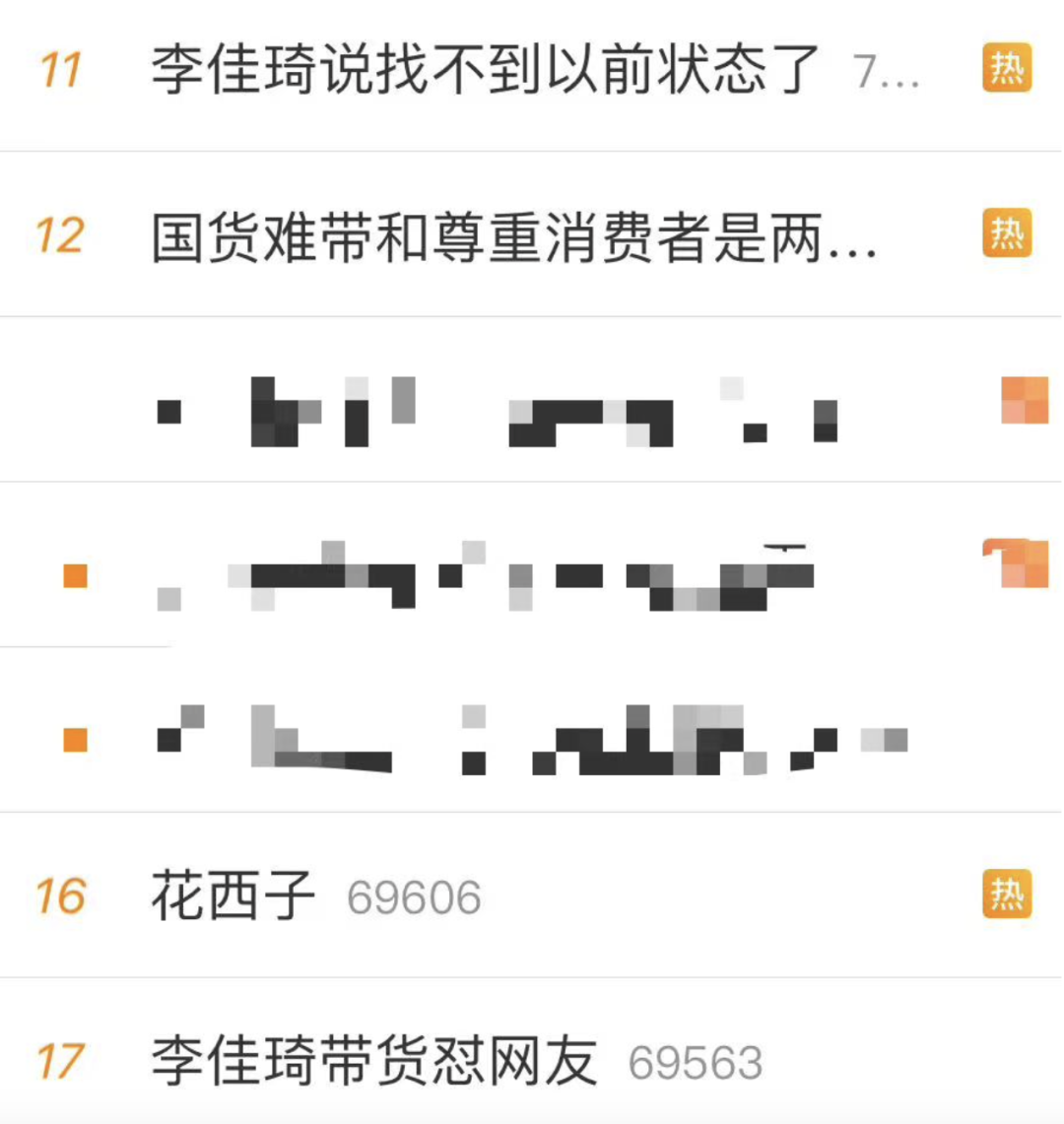李佳琦相关词条一下占了4个热搜