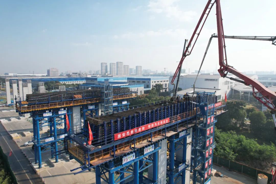JJSD-JJ1标主线桥盖梁顺利浇筑