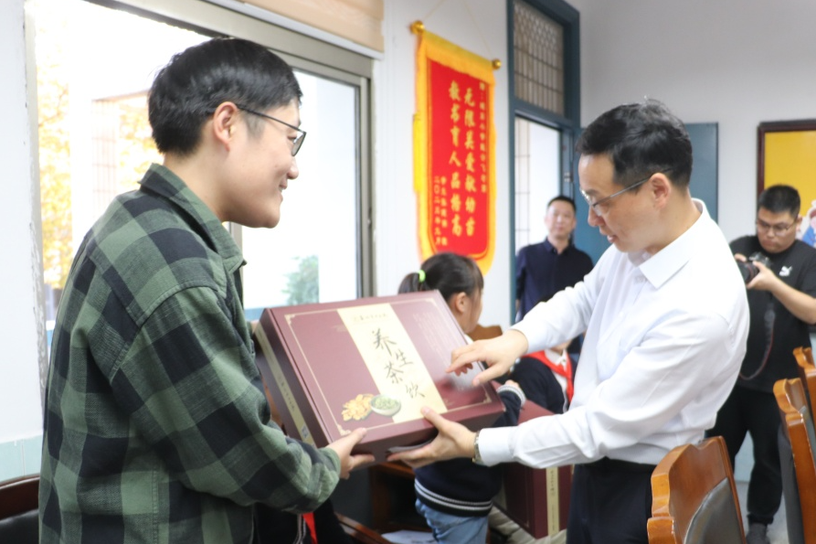 孙晓军副书记为老师和学生代表赠送中药茶饮、香囊