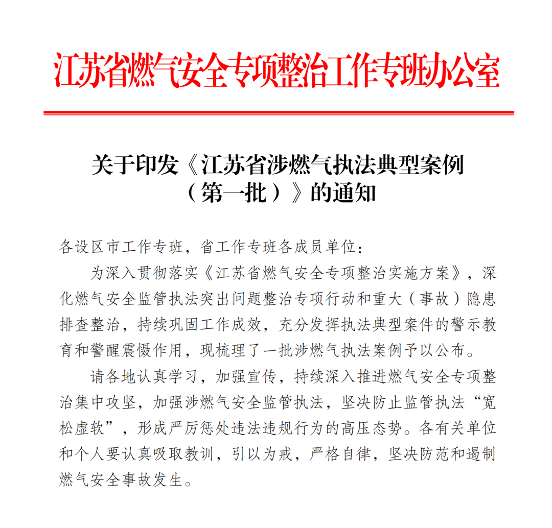 《江苏省涉燃气执法典型案例(第一批)》的通知
