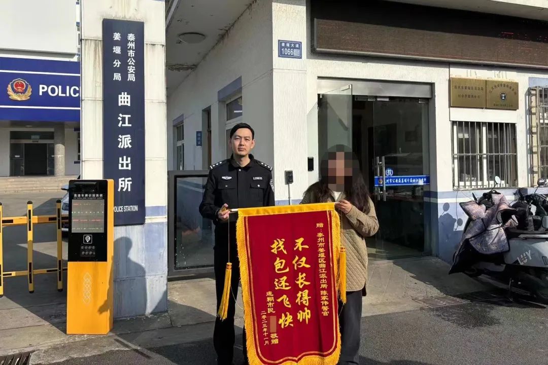 11月20日,泰州市公安局姜堰分局曲江派出所民警陈家伟收到了“迷糊市民”王女士送来的感谢锦旗,锦旗上俏皮有趣的文字让民警忍俊不禁。
