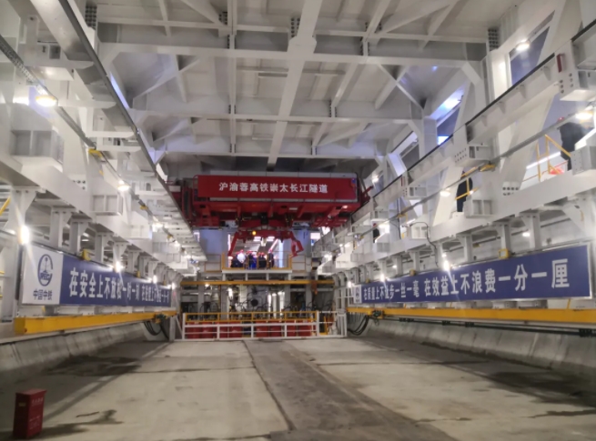 崇太长江隧道连接上海市崇明区和江苏省太仓市,隧道全长14.25km,其中盾构段长13.25km,设计时速350km,单洞双线设计,是目前建设标准最高、掘进距离最长、规模最大的世界级高铁越江隧道工程。