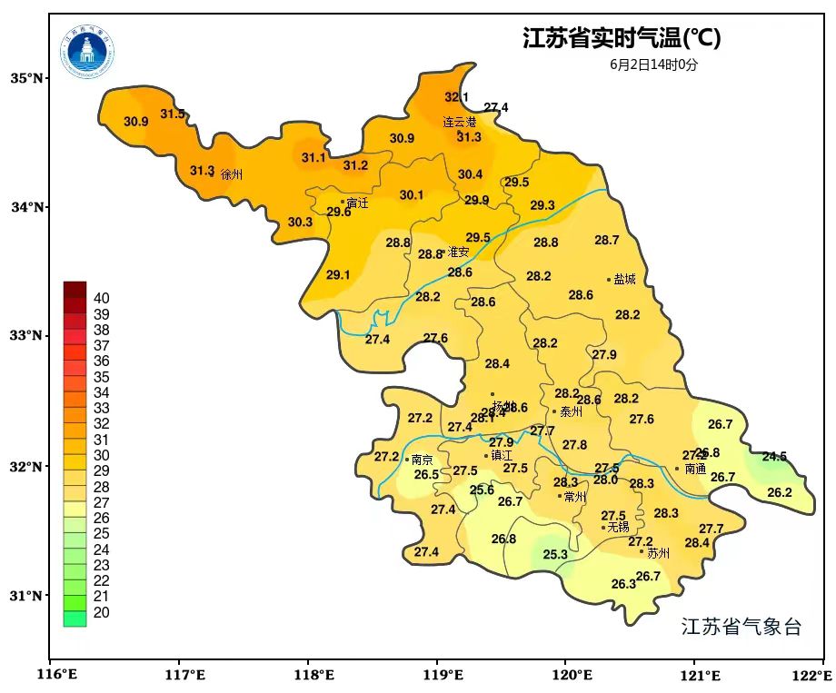 排第一的赣榆32.3℃