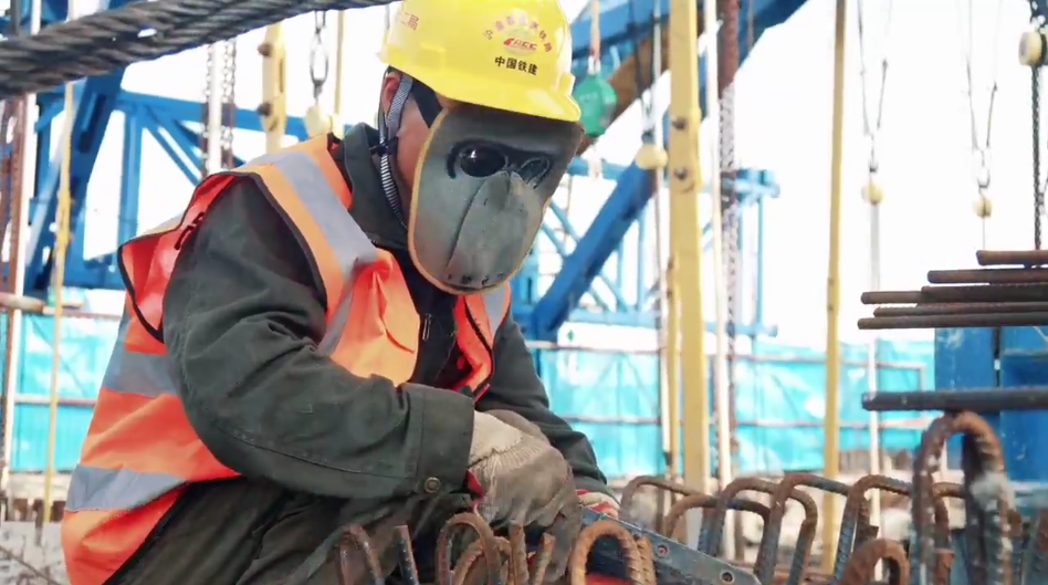 ▲北沿江高铁建设者顶着烈日施工