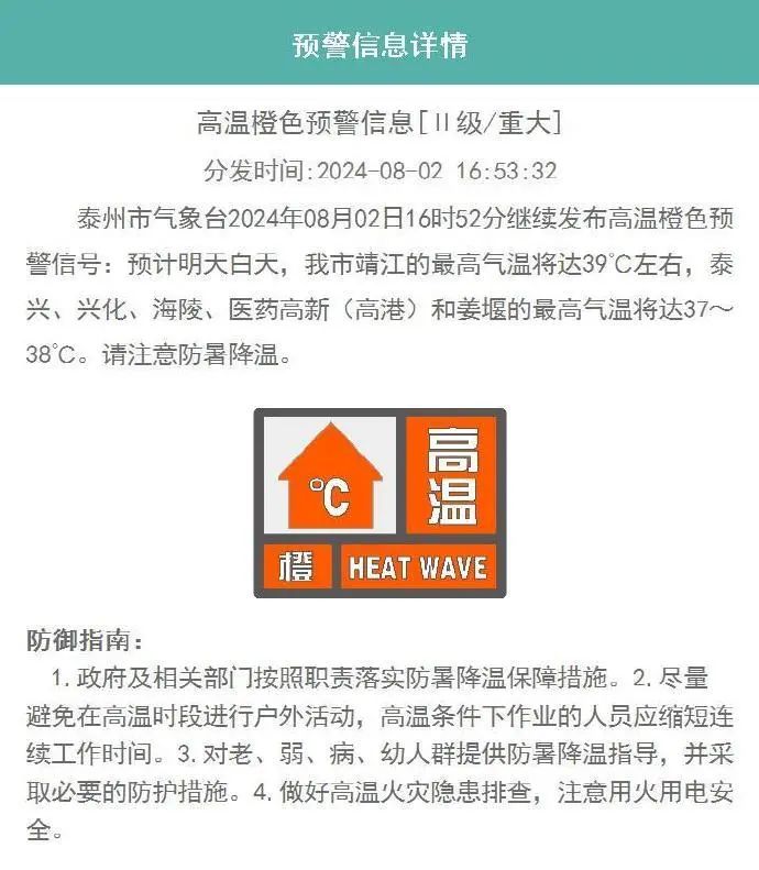 最高气温38℃!阵雨或雷雨!泰州接下来......