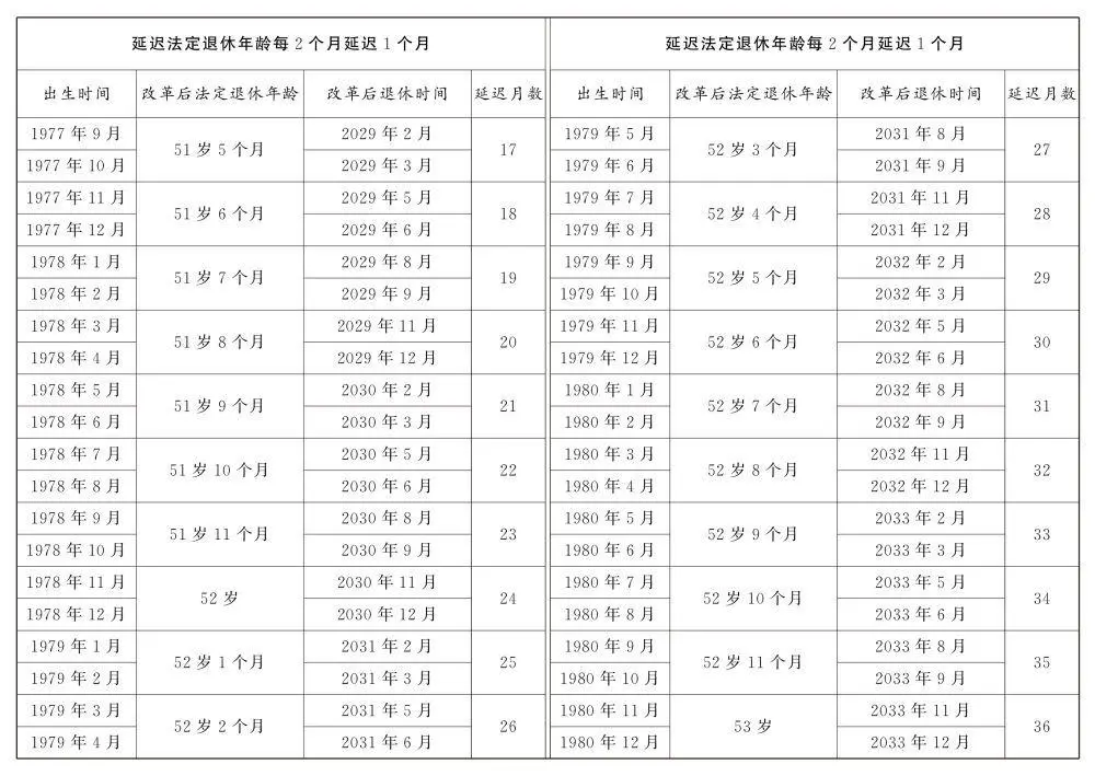关于实施渐进式延迟法定退休年龄的决定明年起施行(此前报道→全国人大常委会关于实施渐进式延迟法定退休年龄的决定),年龄对照表公布↓