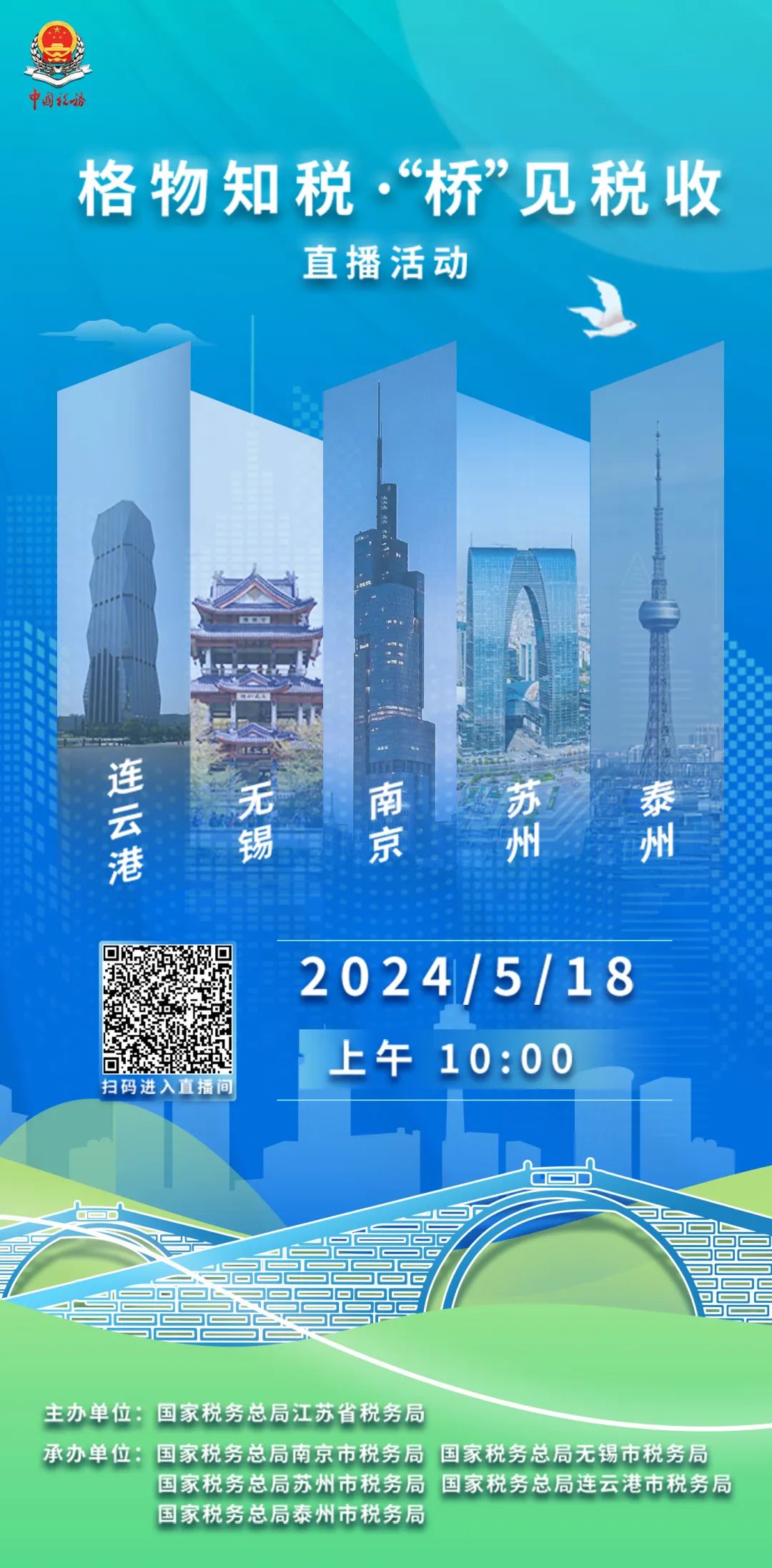 江苏,这片拥有丰富水资源的土地,桥梁众多,不仅连接着江河湖海,更承载着历史的沉淀与未来的希望。5月18日上午10点,“格物知税·‘桥’见税收”直播活动将于新华网客户端在线播出。