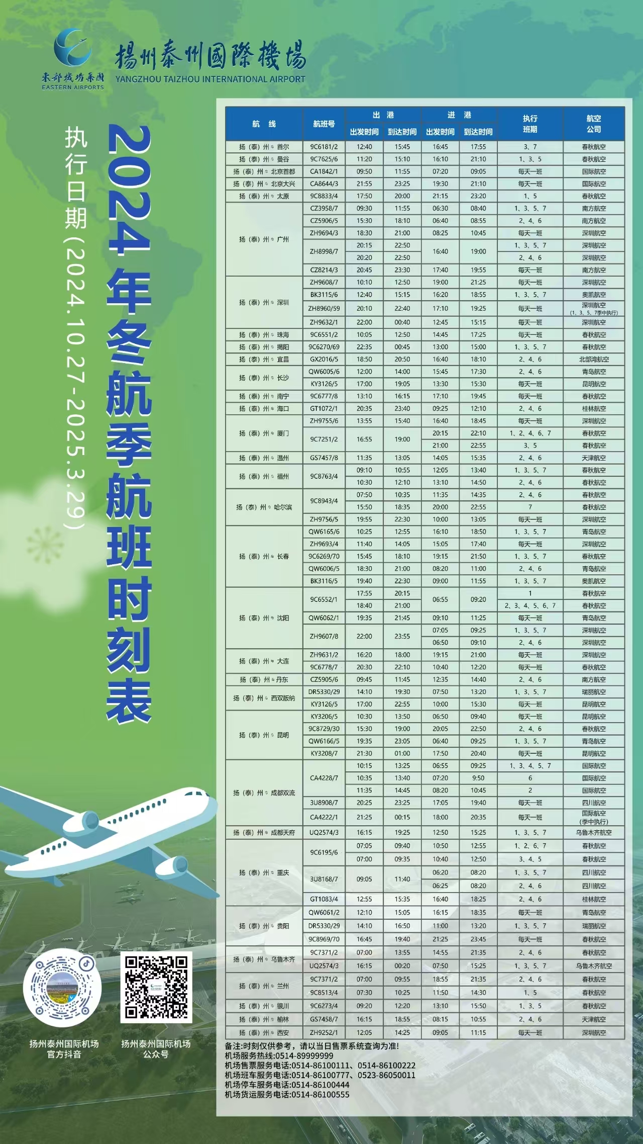 2024年冬航季航班时刻表