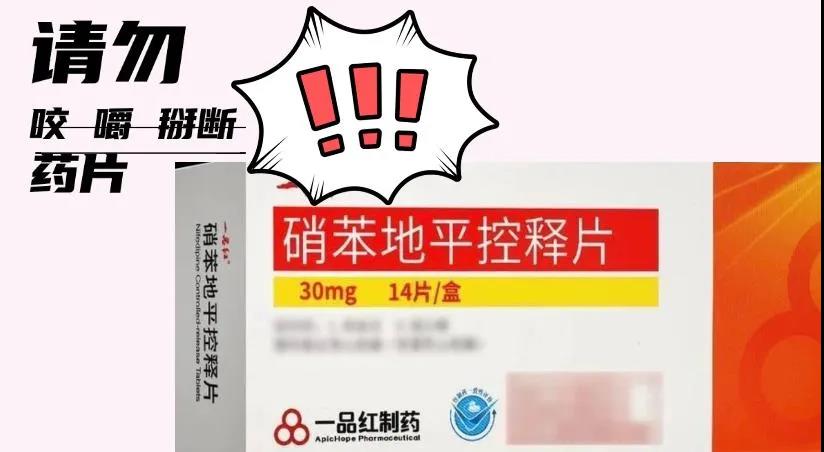 原来,张女士吃的是硝苯地平控释片,这药 1 片相当于 3 片普通硝苯地平片的剂量。要是咬碎、掰开或者研磨服用,大剂量的降压药会瞬间释放到体内,导致血压快速下降,这多危险啊!