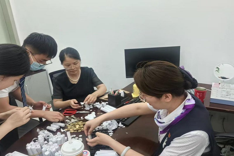客户兑换硬币或零钱有时会成为令人头疼的事情,耗时耗力,但为客户提供硬币清点的服务,提高硬币整洁度和使用率,是不断提升现金服务水平,更好地服务社会公众的责任担当。对耗时较多的业务要做到及时安排,相互配合,齐心协力发挥团队协作精神,积极参与硬币的清点、分装工作,提高服务质效。