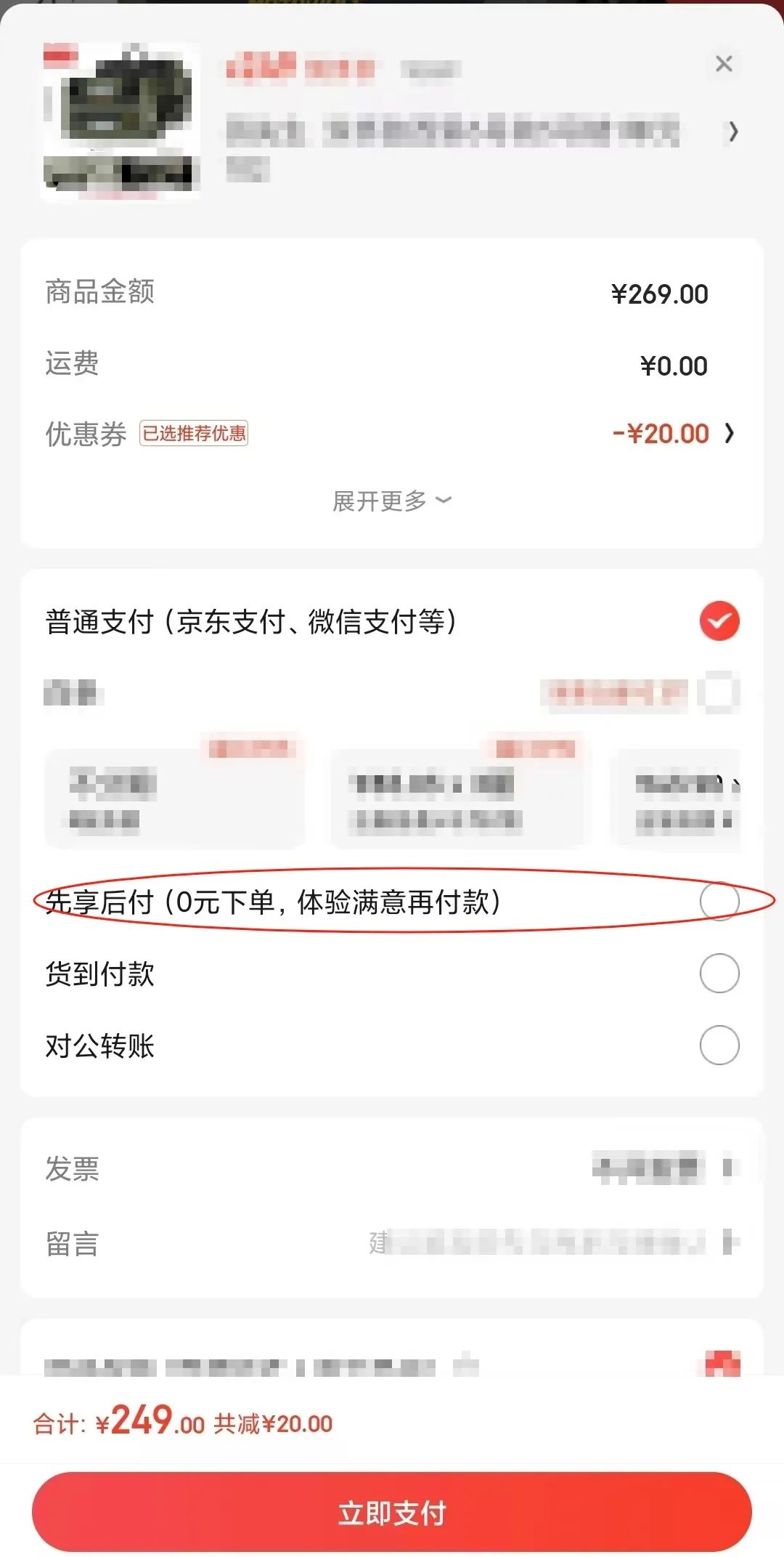京东平台“先用后付”功能不默认开启,在付款页面,消费者可以自主选择付款方式。