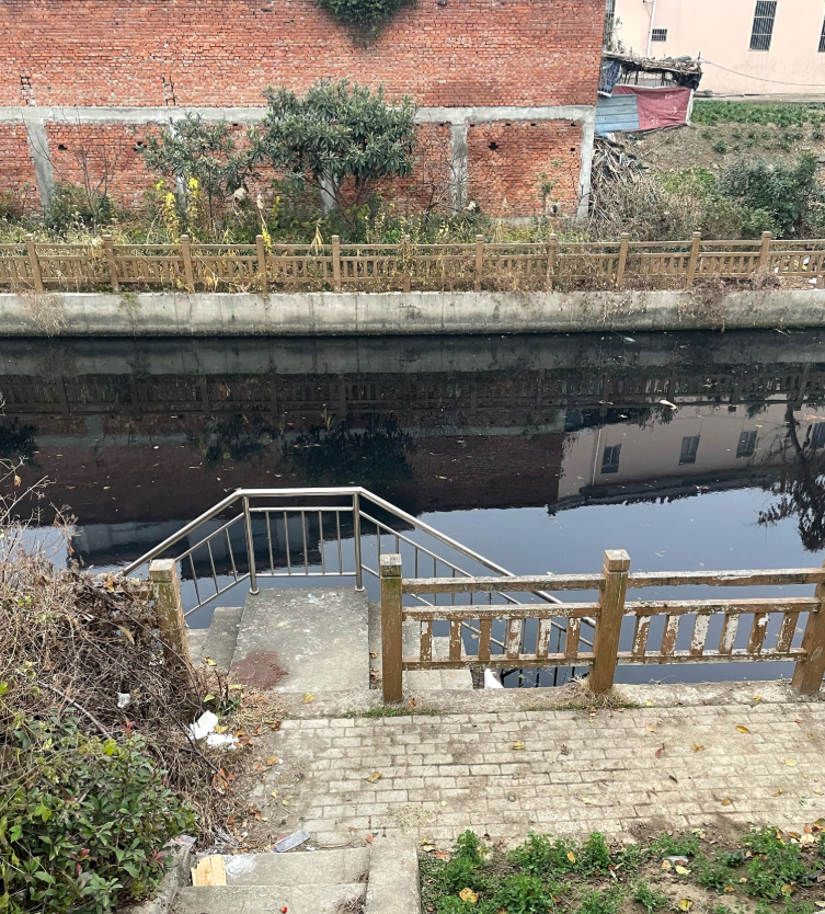 九龙镇振东社区河道水不流通,水跟墨汁似的已经一年之久,花大价钱修的河道水不治理好,虎头蛇尾。