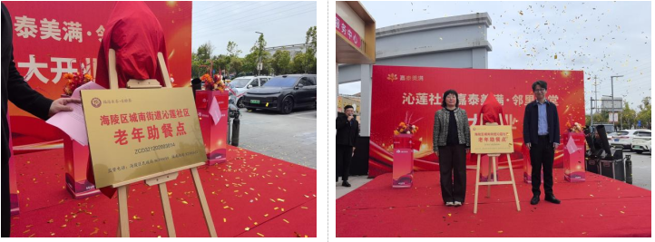 嘉泰美满董事长申静先生、沁莲社区有关领导、餐饮板块合作单位泰州金域国际维景酒店总经理田飞、运营总监陈冰洁女士及媒体朋友共同出席,泰州广电新闻中心、泰州日报社、海陵新闻以及多家本地自媒体到场报道,与众多居民一同见证了这一温馨时刻。