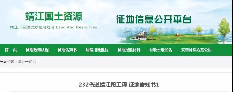 关于232省道靖江段工程征地告知书