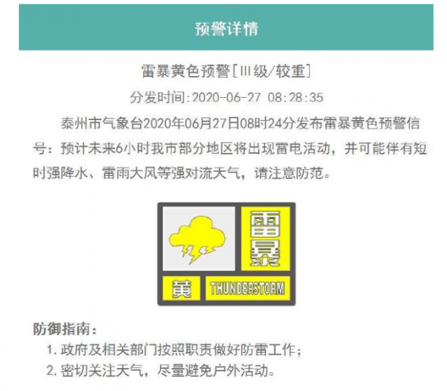 泰州市气象台发布