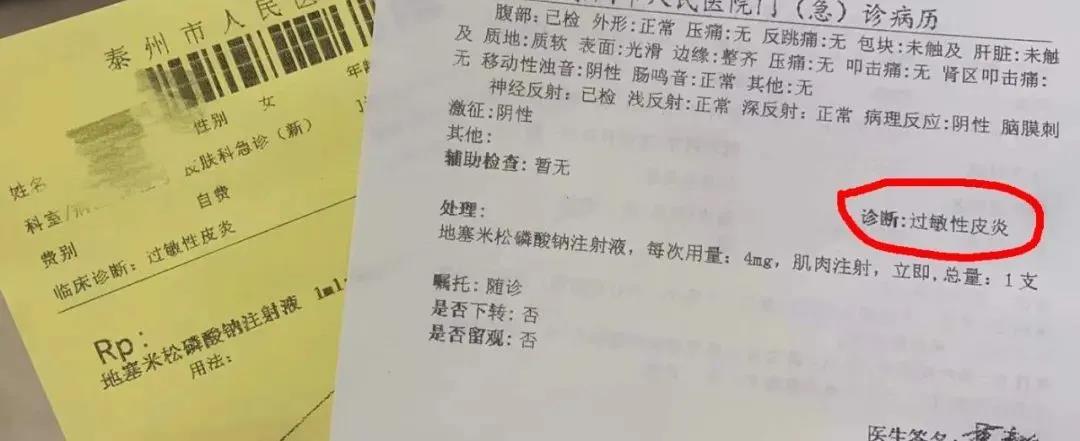 网友鞠女士求助称:近期,她在高港区通港东路(刁铺转盘东南角)的一家名为丽***D的洗浴中心洗了个澡,然而,回家后第二天全身发红起疹子,只得连夜去了医院就诊,被诊断为过敏性皮炎。