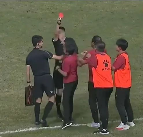 这一判罚让辽宁教练组感到非常不满,随后主裁判陈浩跑到场边向辽宁教练组成员出示黄牌。辽宁沈阳城市的主帅段鑫上前阻拦,随后被陈浩出示红牌。此时,段鑫彻底丧失了理智,直接狠狠地怒扇陈浩。