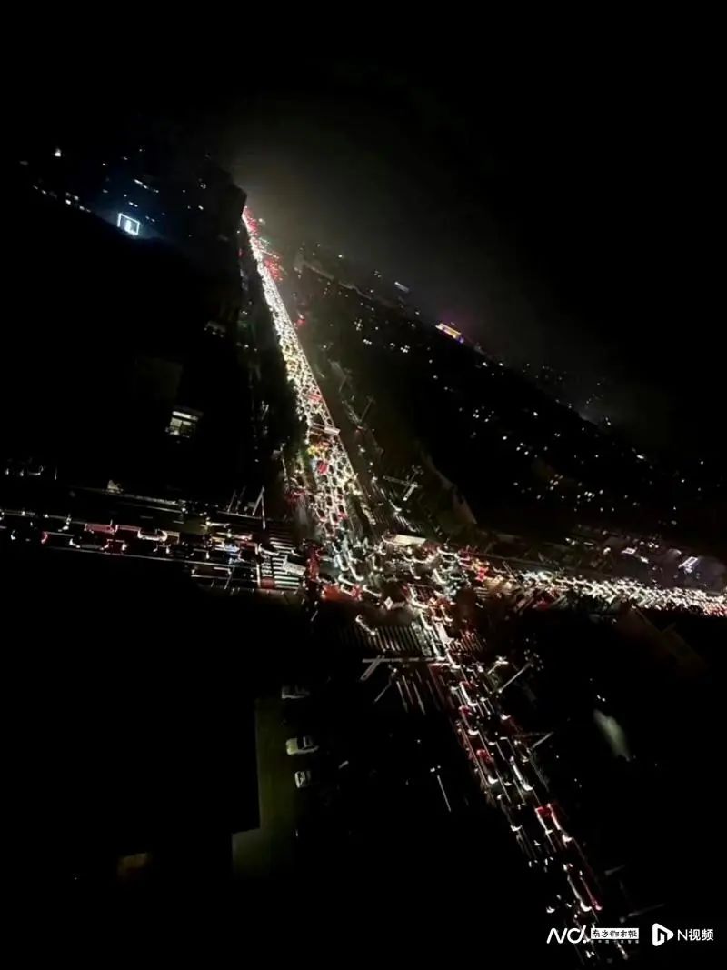 8月1日晚间至8月2日凌晨,白沟新城路上堵满了撤离的车辆