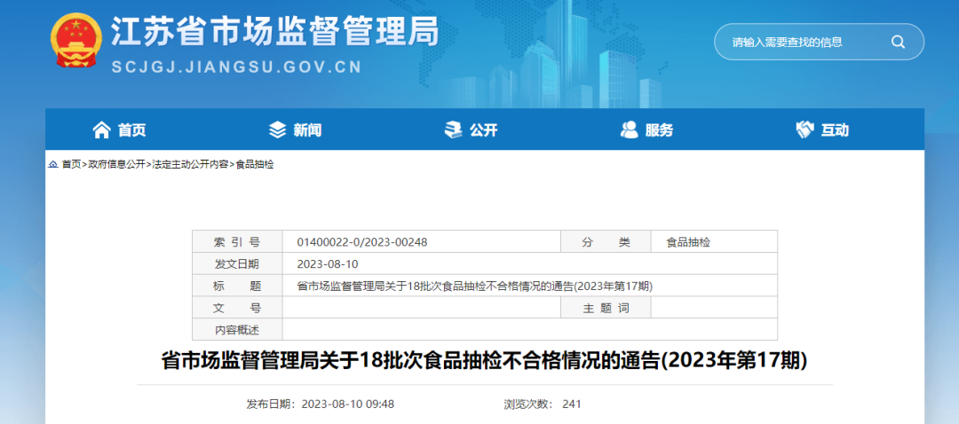 近期江苏省市场监督管理局组织食品安全抽检抽取16大类食品672批次样品检出18批次样品不合格