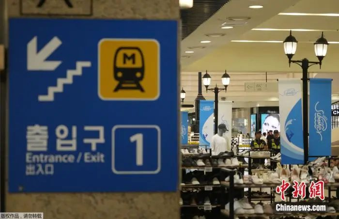 8月3日,韩国京畿道城南一百货商场发生随机行凶事件,警方封锁现场。