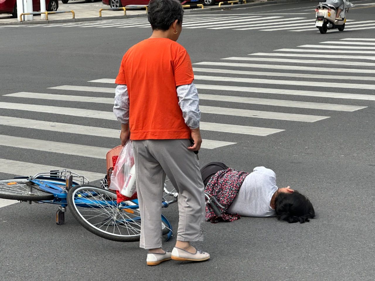 近日网友爆料称在9月3日下午14:00许,城区振兴桥上发生一起交通事故,一辆由北向南的机动车与一辆骑自行车的大妈发生碰撞,自行车骑行人员倒地不起。