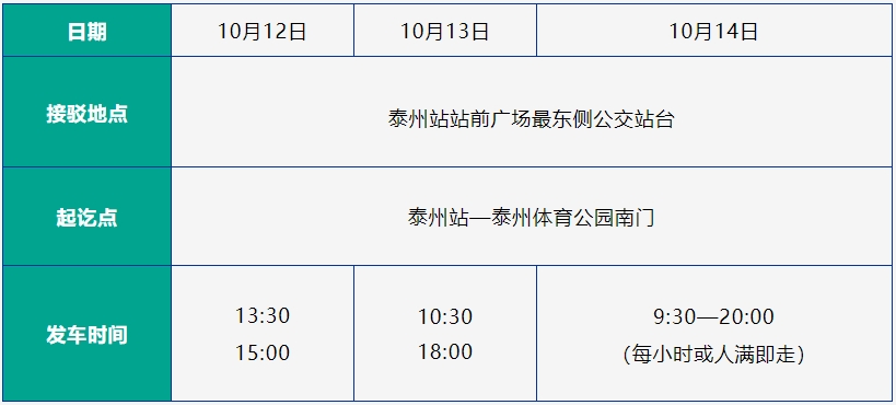 赛前接驳点及发车时间