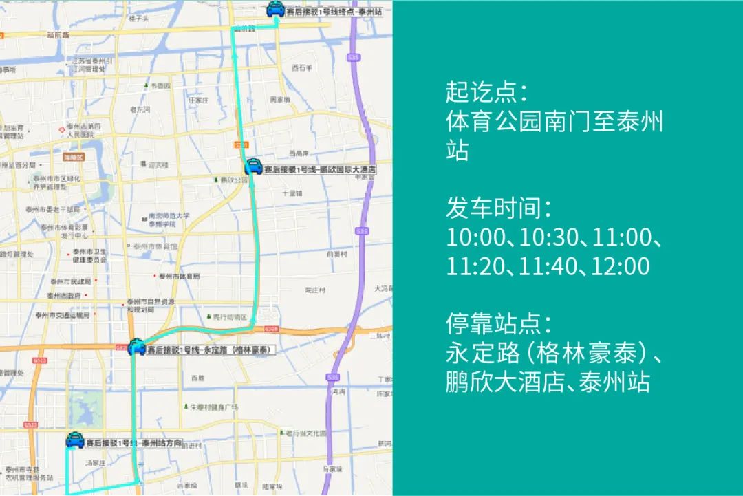 赛事当天体育公园内及周边合围道路临时封控,海军东路、泰州大道、东风快速路辅路、姜高路、淮河路沿线禁止停车。