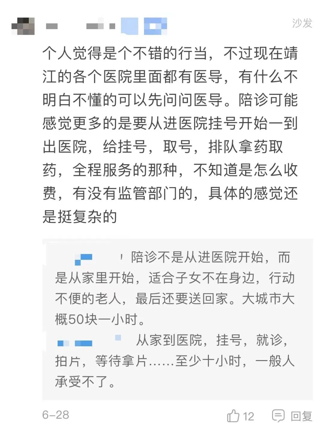 很多网友在了解陪诊的意思后表示,靖江就这么点大,医院也不多,真的有必要吗?