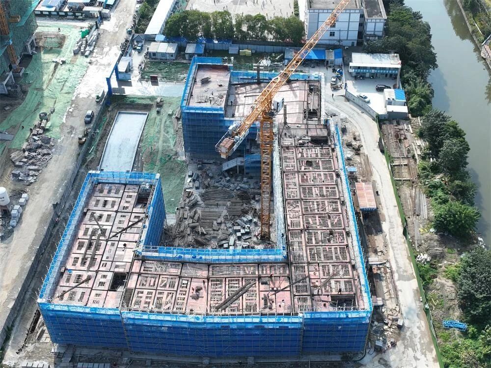 从航拍照片来看,小学部也即将进入封顶阶段。为什么两栋楼同时开工,一快一慢,因为幼儿园没有地下室,所以进度比较快, 小学部分则有地下室工程,所以工程量更大,进度相对慢一些,但目前也已进入地上工程施工阶段。