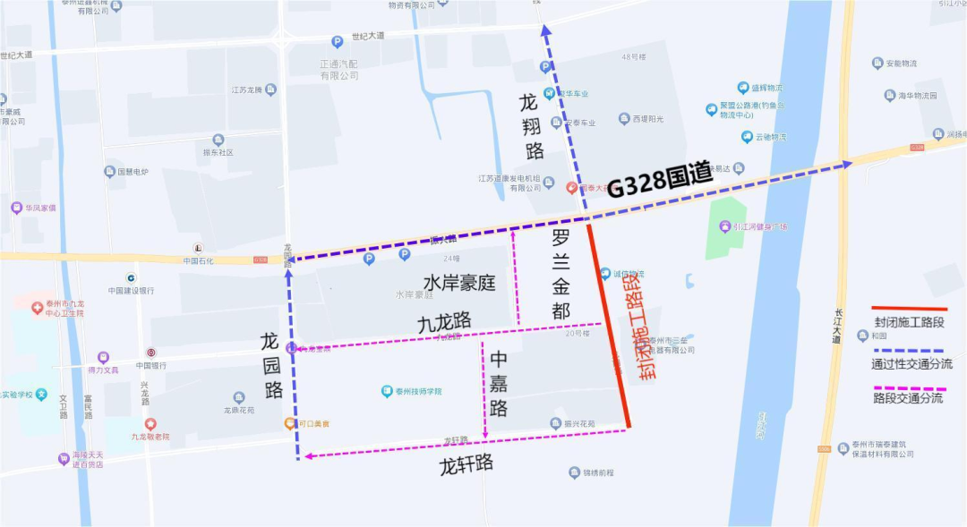 为保障海陵区“四好农村路”龙翔路改造工程的顺利实施,保障施工期间道路交通安全,依据《中华人民共和国道路交通安全法》第三十九条之规定,决定对龙翔路部分路段采取限制交通措施。现将有关事项通告如下: