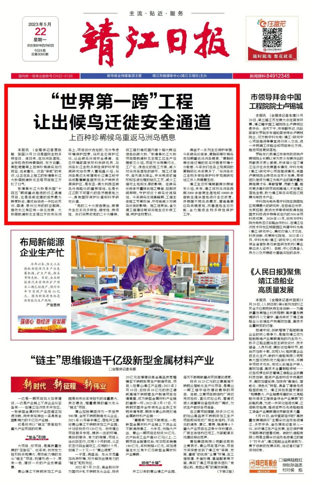 市融媒体中心创作的《向“世界一流”目标鸣笛远航——靖江高技术船舶产业集群发展新观察》《“世界第一跨”工程让出候鸟迁徙安全通道 上百种珍稀候鸟重返马洲岛栖息》2件作品获报纸类二等奖、优秀奖。