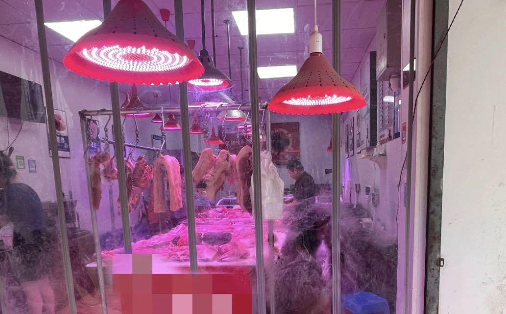 为什么肉菜的新鲜度 前后会有如此大的变化? 那是因为商家给食材开了“美颜灯” 也就是所谓的生鲜灯
