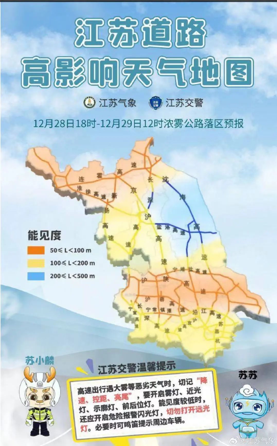 刚刚 @江苏交通发布最新消息 受雾霾天气影响 江苏部分高速公路实行 特级管制 具体如下 ↓ 受雾霾天气影响,徐州、连云港、宿迁、淮安、盐城、泰州、南通、扬州、无锡等市部分高速公路实行特级(道路封闭)交通管制措施。 特级管制路段如下: 润扬大桥,五峰山大桥,泰州大桥,江阴大桥,沪苏通大桥,崇启大桥,G2京沪高速徐州至无锡段,G3京台高速徐州段,G15沈海高速连云港至南通段,G25长深高速连云港至南京段,G30连霍高速连云港至徐州段,G1516盐洛高速淮安至盐城段,G2513淮徐高速徐州至宿迁段,G40沪陕高速南通至扬州段,G42沪蓉高速常州至镇江段,G1515盐靖高速盐城至泰州段,S49新扬高速梅花至段宅、淮安、扬州段,S69济徐高速徐州段,S39江宜高速常州段,S28启扬高速南通至扬州段,G2503绕越高速南京段,G4011扬漂高速扬州段,S35阜溧高速盐城至泰州段,S19通锡高速苏州至南通段。 泰州高速全境实行特级管制 泰州市区快速路 均封闭管理,禁止通行