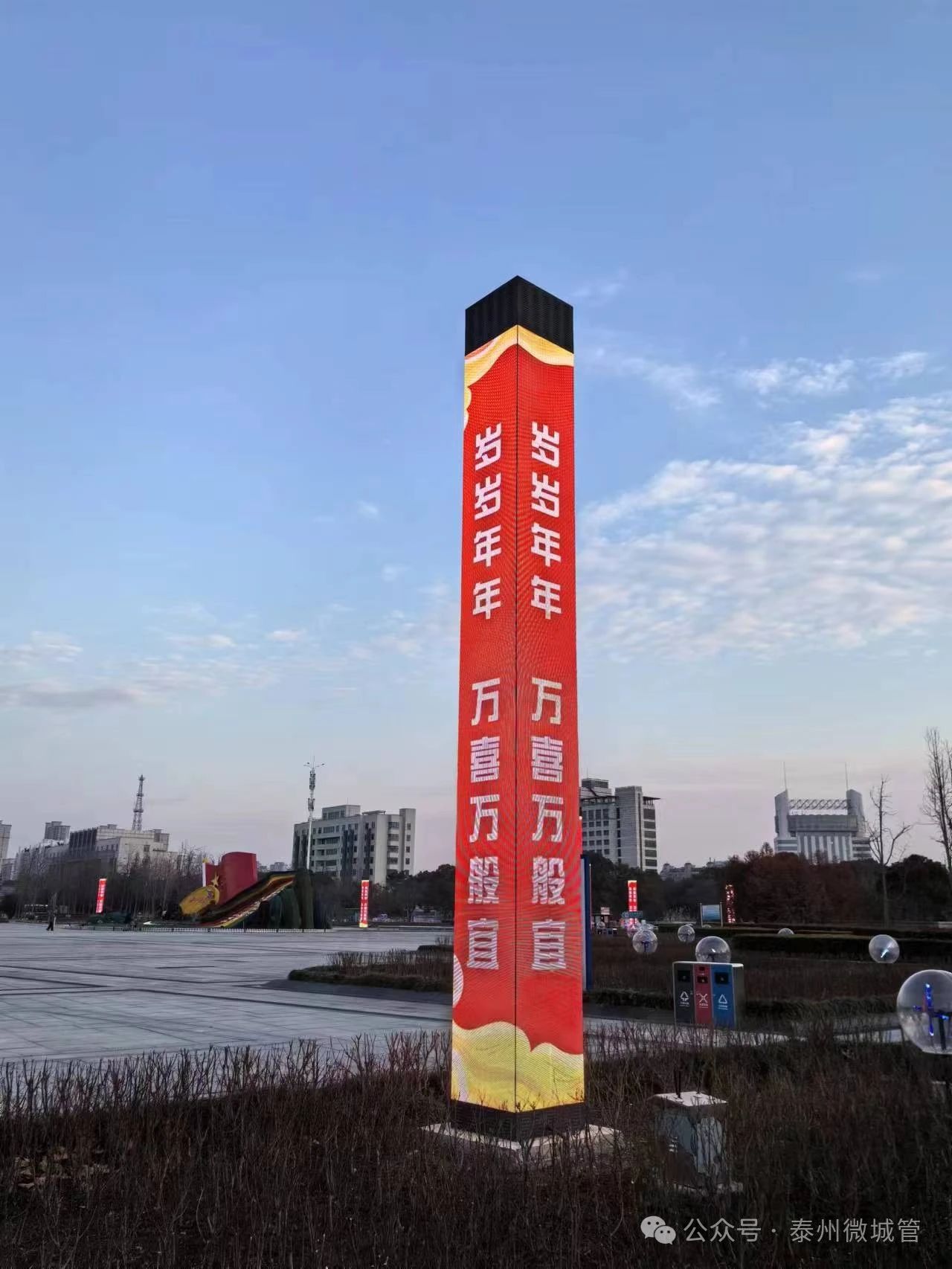 海陵区已完成青年路(海阳路-济川路)、海陵路(人民路-济川路)、东进路(南官河-春晖路)、迎春路(南官河-春晖路)、济川路(南官河-五叉路口)亚克力红灯笼的制作安装,其余路段灯笼及重要节点的城市小品预计在2月7日前全部完成。