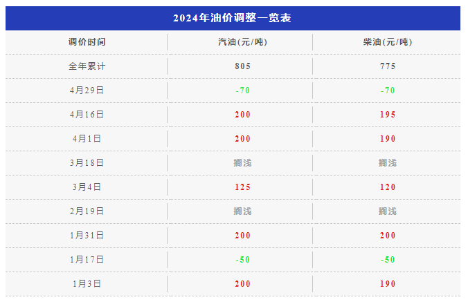 2024年1月1日起至今 油价呈现“5涨2跌2搁浅” 2024年汽油累计上涨805元/吨 柴油累计上涨775元/吨 折合每升上涨0.22—0.24元