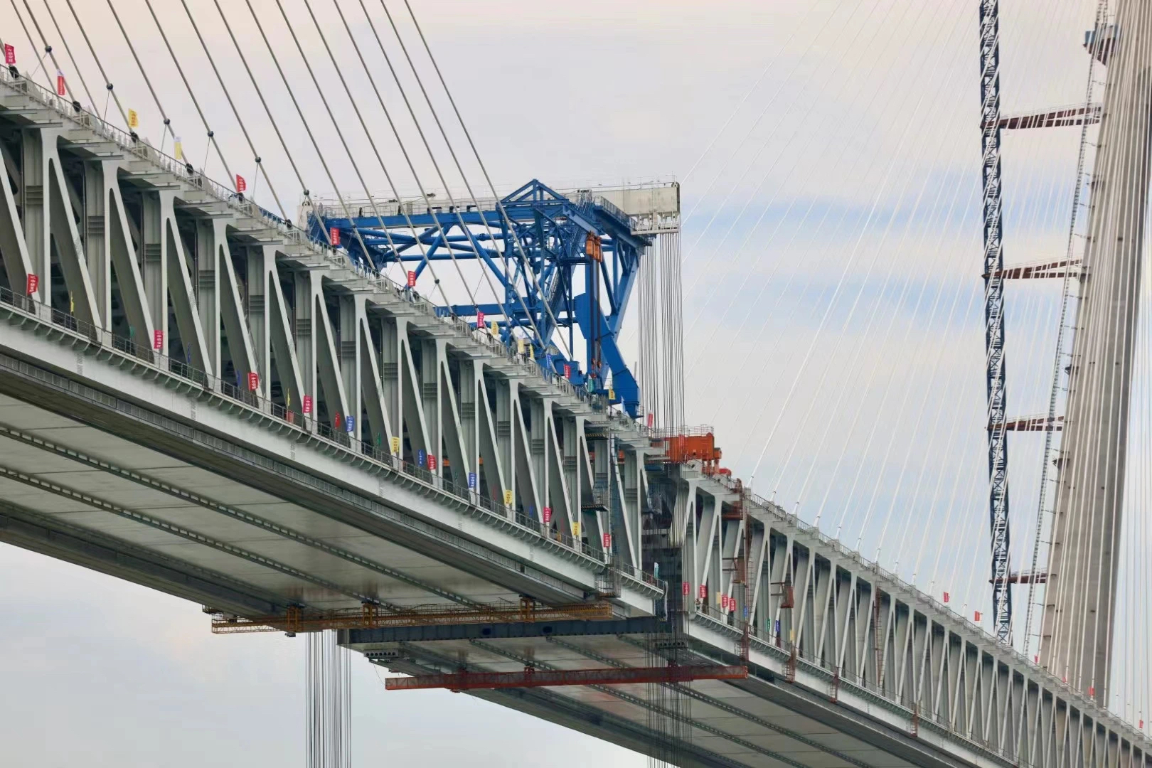 至此 经过近16个月的连续施工 这座世界最大跨度斜拉桥的 钢桁梁吊装全部完成 正式拉开了主桥合龙的序幕
