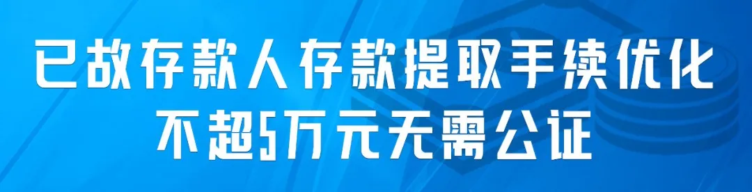 《关于优化已故存款人小额存款提取有关要求的通知》6月1日起施行。已故存款人第一顺序继承人、公证遗嘱指定的继承人或受遗赠人提取已故存款人存款时,金额不超过5万元时,可简化提取手续。同时,将银行业金融机构黄金积存产品以及代理销售的国债、理财产品纳入简化提取范围等。
