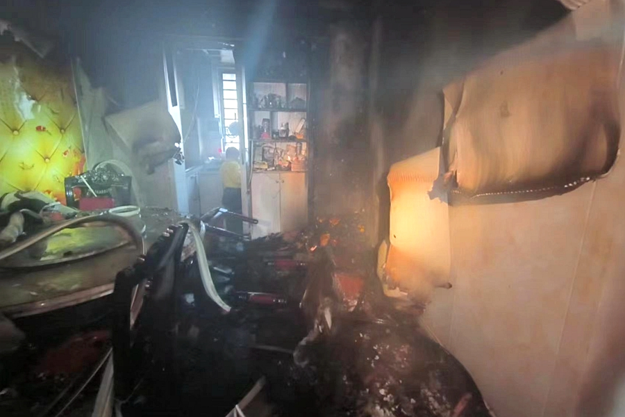 火灾发生时,家在10楼的蔡先生被一股热浪惊醒。当蔡先生起床查看时,发现客厅满是浓烟。随即,他迅速退回卧室,关闭房门,让10岁的女儿躲进卧室的卫生间里,并面对着窗户,呼吸新鲜空气。而后,蔡先生用湿毛巾堵住卧室门缝,回到卫生间并拨打了119报警。消防救援人员很快赶到现场,成功打开房门后,快速找到被困的父女两人,疏散到安全地带。与此同时,明火也被扑灭。