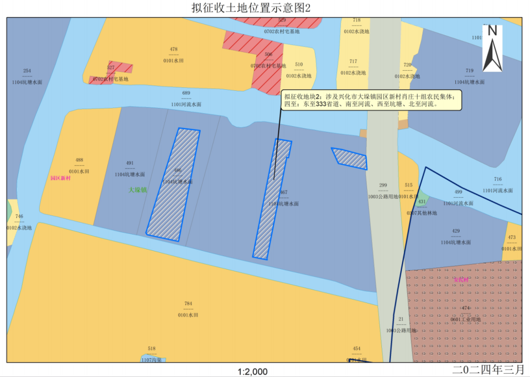 拟征收地块2:位于大垛镇园区新村肖庄十组范围内。